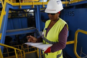 La técnica de seguridad Felicia Despaigne supervisa que los trabajadores cumplan con las medidas de seguridad en la planta la Empresa Mixta Minera del Caribe SA (Emincar), en Minas de Matahambre, en el extremo occidental de Cuba. Crédito: Jorge Luis Baños/IPS