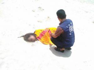 Personal de la Organización Internacional de las Migraciones (OIM) se ocupa de los restos de una persona fallecida en una playa de Yemen. Crédito: OIM.