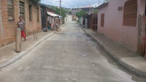 Calles pavimentadas como esta, que hasta hace poco eran caminos de tierra, muchas veces enlodados, son el resultado de un programa integral de mejora en barrios marginados de Tegucigalpa, que contó con la activa participación de la comunidad. Crédito: Thelma Mejía/IPS