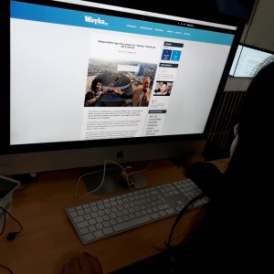 Graciela Tiburcio, en primer plano, y Carla Díaz, en la redacción del medio digital peruano Wayka. Su investigación sobre presuntos delitos de fraude y legitimación de activos de grupos evangélicos en Perú, desató una campaña de amenazas en su contra. Crédito: Mariela Jara/IPS