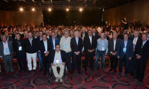 El presidente Mauricio Macri (centro) y el ministro de Trabajo, Jorge Triaca (en silla de ruedas), junto a líderes sindicales y funcionarios de organismos internacionales, en la Conferencia Mundial sobre Trabajo Infantil celebrada en Buenos Aires este mes. Allí se cerró el apoyo de la principal central sindical a la reforma laboral. Crédito: Presidencia de la Nación.