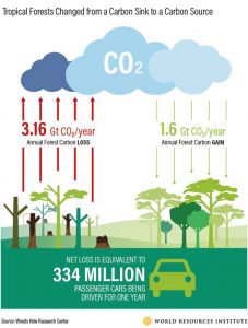 Las selvas pasan de sumideras de carbono a fuentes de carbono. Crédito: Instituto de Recursos Mundiales.