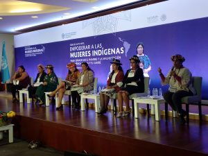 Durante el foro de alto nivel «Empoderar a las mujeres indígenas para erradicar el hambre y la malnutrición en América Latina y el Caribe», el 12 y 13 de 2018 en Ciudad de México, representantes gubernamentales y de organismos internacionales, delegadas y parlamentarias aborígenes debatieron sobre discriminación y derechos, biodiversidad y sistemas alimentarios indígenas y consentimiento libre, previo e informado. Crédito: Emilio Godoy/IPS.