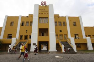 Fachada de la Ciudad Escolar 26 de Julio, el antiguo Cuartel Moncada, donde una parte es ocupada por el museo, en la ciudad de Santiago de Cuba, la segunda ciudad de este país caribeño. Crédito: Jorge Luis Baños/IPS