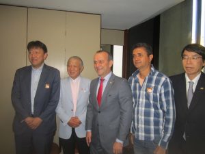 Yohei Sasakawa (2do I), presidente de la Fundación Nipona, acompañado por dos miembros de su delegación, durante el encuentro con el diputado Helder Salomão (C), presidente de la Comisión de Derechos Humanos de la Cámara de Diputados de Brasil, quien se comprometió a apoyar iniciativas para eliminar la lepra en el país. En la reunión también participó Faustino Pinto (2do D), coordinador nacional del Movimiento de Reintegración de las Personas Afectadas por la Hanseníasis (Morhan). Crédito: Mario Osava/IPS