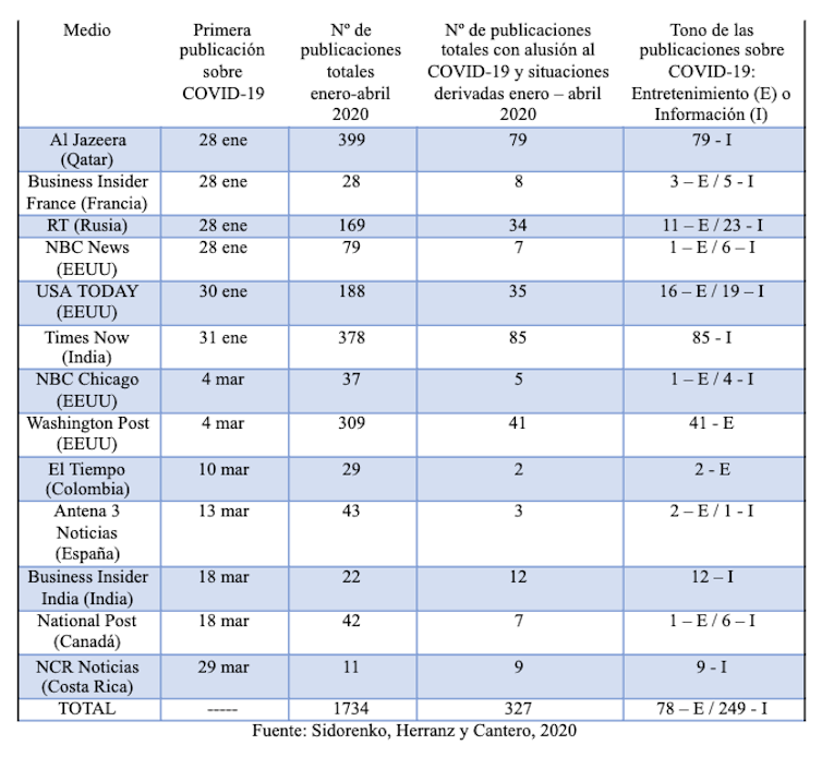 Durante el primer cuatrimestre de 2020, 13 de los medios activos en TikTok hicieron cobertura expresa a la pandemia por covid-19. Pese a que la plataforma ya acumula cuatro años de funcionamiento, 2020 representa un momento incipiente y de experimentación para el periodismo.