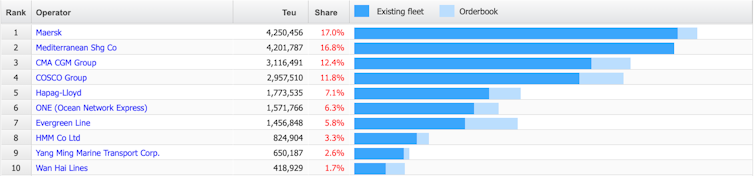 Tres años atrás la oferta de transporte marítimo internacional había menguado debido a una serie de fusiones y adquisiciones que redujo el número de navieras. En la actualidad, cinco compañías copan 65 % del mercado de contenedores (la danesa Maersk, la italiana MSC, la francesa CMA CMG, la china Cosco Group y la alemana Hapag Lloyd), lo que las convierte en las dueñas del comercio mundial.