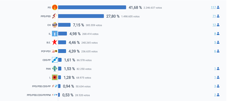 La izquierda se ha agrupado por primera vez dentro del PS y la derecha ha implosionado en tres partidos, llevándose por delante al histórico CDS-PP, que en el lejano tiempo de 1976 llegó a tener 42 diputados.![]()