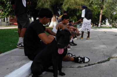 Jóvenes usan teléfonos móviles mientras juegan en línea, en una calle de La Habana, en julio de 2025. Los jóvenes representan en Cuba el grupo poblacional más vulnerable para caer en la adicción por las drogas y en particular una sintética de bajo costo y especialmente tóxica. Imagen: Jorge Luis Baños / IPS