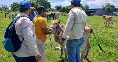 Personal del Ministerio de Agricultura y Ganadería de Guatemala realizan una jornada contra el gusano barrenador en hatos de los departamentos de Izabal y Petén, en el noroeste y norte del país, respectivamente. Imagen: Maga