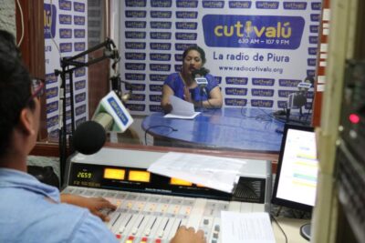 Una transmisión en Radio Cutivalú, en Piura, norte de Perú, emisora que hace énfasis en la educación y derechos humanos en la frontera con Ecuador. Los programas de la institución, como los de muchas radios comunitarias latinoamericanas, acusan el impacto de los recortes de la cooperación internacional. Imagen: Radio Cutivalú