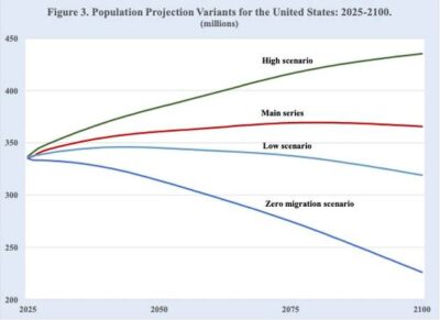 Gráfico 3. Proyecciones de población para Estados Unidos: 2025-2100. Fuente: Oficina del Censo de Estados Unidos