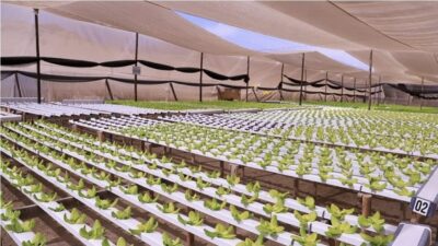 Uno de los grandes invernaderos para el cultivo hidropónico de hortalizas regadas con agua desalinizada, en la finca de uno de los 90 socios de la Asociación de productores agrícolas de Altos de la Portada, en la norteña región chilena de Antofagasta. Imagen: Cortesía de la Asociación de Productores Agrícolas de Altos de la Portada.
