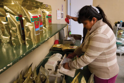 Trabajadores en Café Justo empacan el producto destinado a la exportación pero que también se vende a consumidores locales. Los granos provienen de una cooperativa con decenas de familias caficultoras en la zona de Tapachula, en el extremo sur de México. Imagen: Café Justo