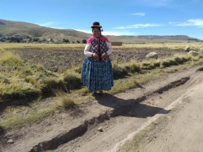 Rosa Cachi, una campesina aymara del sur andino departamento peruano de Puno, vive los efectos del cambio climático como una presencia perjudicial imprevista pero constante, que se suma a los obstáculos que como mujer rural peruana enfrenta cada día. En la imagen, en su comunidad campesina, Quilca, por sobre los 3800 metros sobre el nivel del mar. Imagen: Cortesía de Rosa Cachi