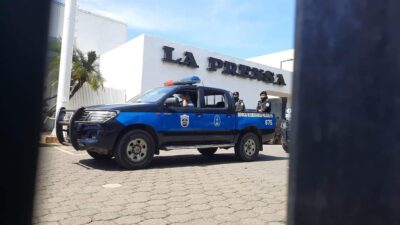 Imagen del asalto y confiscación del diario La Prensa en agosto de 2021. Era el último periódico que circulaba en Nicaragua. Imagen: José Mendieta / IPS