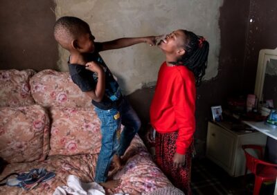 Tsholofelo Msimango y su hijo en su casa en Brakpan, cerca de Johannesburgo, en Sudáfrica. Imagen: TB Alliance / Jonathan Torgovnik
