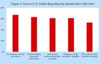 Gráfico 2: Opiniones de la opinión pública estadounidense sobre los archivos de Epstein – Mediados de 2025. Fuente: Encuestas de The Economist/YouGov, The Washington Post y la Universidad de Amherst