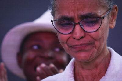 La ministra de Medio Ambiente y Cambio Climático de Brasil, Marina Silva, emocionada en la plenaria conclusiva de la COP30, el 22 de noviembre, cuando admitió «avances modestos» en la cumbre y la necesidad de seguir en la lucha climática. Imagen: Ueslei Marcelino / COP30