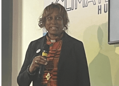 La reverenda estadounidense Angelique Walker-Smith, presidenta regional del Consejo Mundial de Iglesias, participa durante la COP30 en el encuentro titulado “La fe por un futuro libre de combustibles fósiles”. Imagen: Joyce Chimbi / IPS