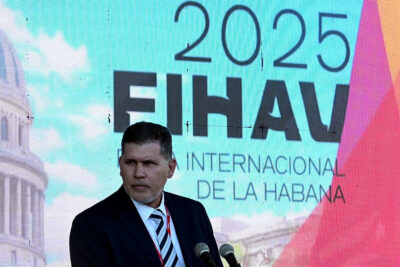 Oscar Pérez-Oliva Fraga, vice primer ministro cubano y titular de Comercio Exterior y la Inversión Extranjera durante la inauguración Feria Internacional de La Habana, Fihav 2025. “El reto en estos momentos está en lograr que ese tejido empresarial se articule de manera natural”, opina. Imagen: Jorge Luis Baños / IPS