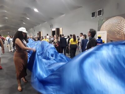 Activistas se manifiestan en los pasillos de la Zona Azul, donde tienen lugar las negociaciones oficiales de los gobiernos en la COP30, para insistir a los gobiernos que el planeta Tierra está muriendo por la escalada de las crisis climáticas. Imagen: Joyce Chimbi/ IPS