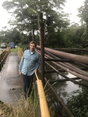 Michael Northrop, director de programas del Fondo de los Hermanos Rockefeller, inspecciona oleoductos en la Amazonia ecuatoriana. Imagen: Cortesía de RBF
