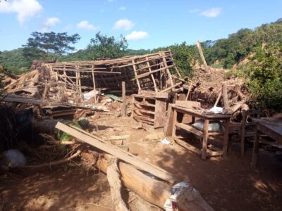 Una granja avícola y parte de una vivienda arrasadas por un vendaval que sorprendió a los habitantes del municipio El Torno, en el departamento de Santa Cruz, aparecen en la fotografía un día después de la tragedia que afecta a más de 30 mil personas en Bolivia. Imagen: Álvaro Ramírez / El Torno Noticias Express