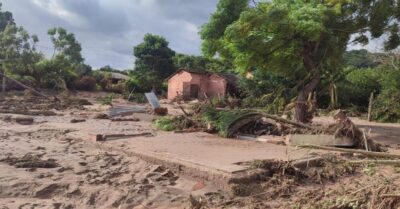 Solo la base de concreto de una vivienda sobrevivió al paso de un turbión que arrasó grandes extensiones del municipio de El Torno, en el departamento boliviano de Santa Cruz, durante la madrugada del sábado 13 de diciembre. Imagen: Sernap