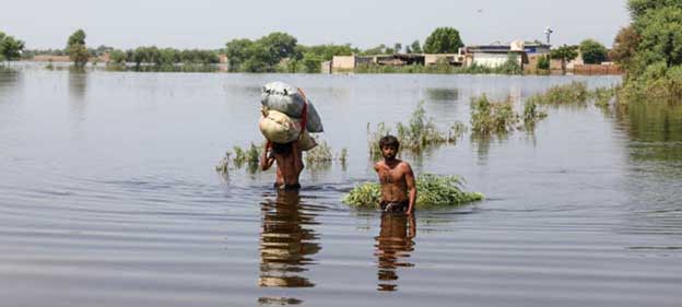 Entonces, fotografías de la región mostraban a personas avanzando con cuidado por aguas que les llegaban a la cintura, sosteniendo con firmeza sus pocas pertenencias sobre la cabeza en un intento por escapar de las inundaciones provocadas por lluvias monzónicas 784 % superiores al promedio.