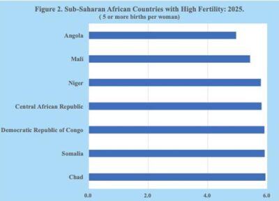 Imagen 2. Países del África subsahariana con alta fecundidad: 2025 (5 o más nacimientos por mujer). Fuente: Naciones Unidas