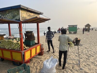 Un vendedor de maíz en la playa Marina, en Chennai, en el sur de India. Los sistemas de alerta temprana pueden no ser suficientes para evitar la pérdida de vidas durante los desastres, mientras las comunidades enfrentan los impactos del cambio climático. Imagen: Athar Parvaiz / IPS