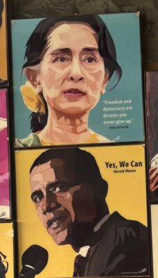 Quedan muy pocos rastros de Aung San Suu Kyi en las zonas controladas por la junta militar en Myanmar. Este cartel colgaba en una cafetería de Yangón en 2024, pero ya no está allí. Imagen: Guy Dinmore / IPS