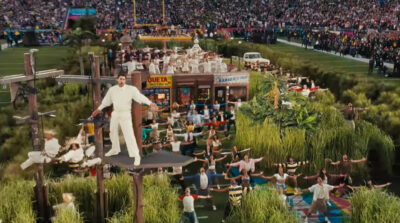 Otra captura de la escenografía con que Bad Bunny acompañó su canción “El Apagón” durante su espectáculo en el intermedio del Gran Tazón de Estados Unidos. Imagen: PxP