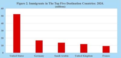 Imagen 2: Inmigrantes en los cinco principales países de destino – 2024 (en millones). Fuente: Naciones Unidas