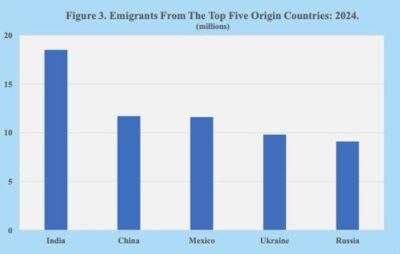 Imagen 3: Emigrantes de los cinco principales países de origen – 2024 (en millones). Fuente: Naciones Unidas