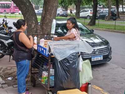 Una mujer que vende diariamente café, galletas y dulces en un puesto informal en la puerta del hospital público Marie Curie, en el barrio de Caballito, en Buenos Aires. Es uno de los tantos empleos autogenerados que hoy proliferan en Argentina, en una economía que no genera trabajo genuino desde hace 15 años. Imagen: Daniel Gutman / IPS