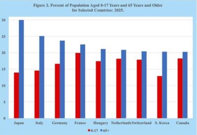 Imagen 2: Porcentaje de la población de 0 a 17 años y de 65 años o más en países seleccionados – 2025. Fuente: Naciones Unidas