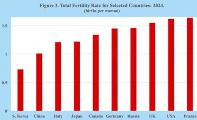 Imagen 3: Tasa global de fecundidad para países seleccionados – 2024: (nacimientos por mujer). Fuente: Naciones Unidas