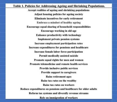 Tabla 1: Políticas para abordar el envejecimiento y la disminución de la población. Fuente: Compilación del autor