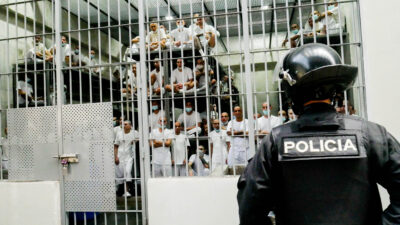 Una abarrotada celda en el Cecot, donde los detenidos permanecen en condiciones muy duras. El presidente Nayib Bukele ha logrado desarticular las peligrosas pandillas en El Salvador, sin embargo, organizaciones de derechos humanos han documentado capturas arbitrarias de personas inocentes, además de variadas violaciones al debido proceso y las garantías de los detenidos, incluidos sus juicios masivos. Imagen: Edgardo Ayala / IPS