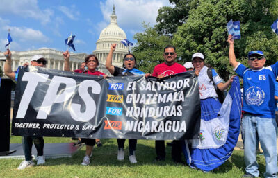 Migrantes demandan en Washington que se mantenga el Estatus de Protección Espacial, el TPS, para los ciudadanos centroamericanos. Imagen: Cortesía de TeleNorte