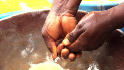 Gladys Akitsa, minera artesanal de oro, mezcla mercurio con concentrado aurífero en el sitio minero de Bushiangala, en Ikolomani, en el condado de Kakamega, en Kenia. Imagen: Chemtai Kirui / IPS